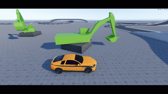 In the following example, the excavator entity becomes a reference space for the car. When the manipulator moves the car, the car moves in relation to the reference space.